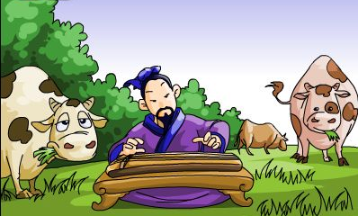 有个弹琴能手叫公明仪,他对牛弹奏一首名叫《清角》的琴曲,牛低着头吃草,就好像没听见任何声音一样。不是牛没有听见,是这美妙的曲子不适合牛的耳朵而已。